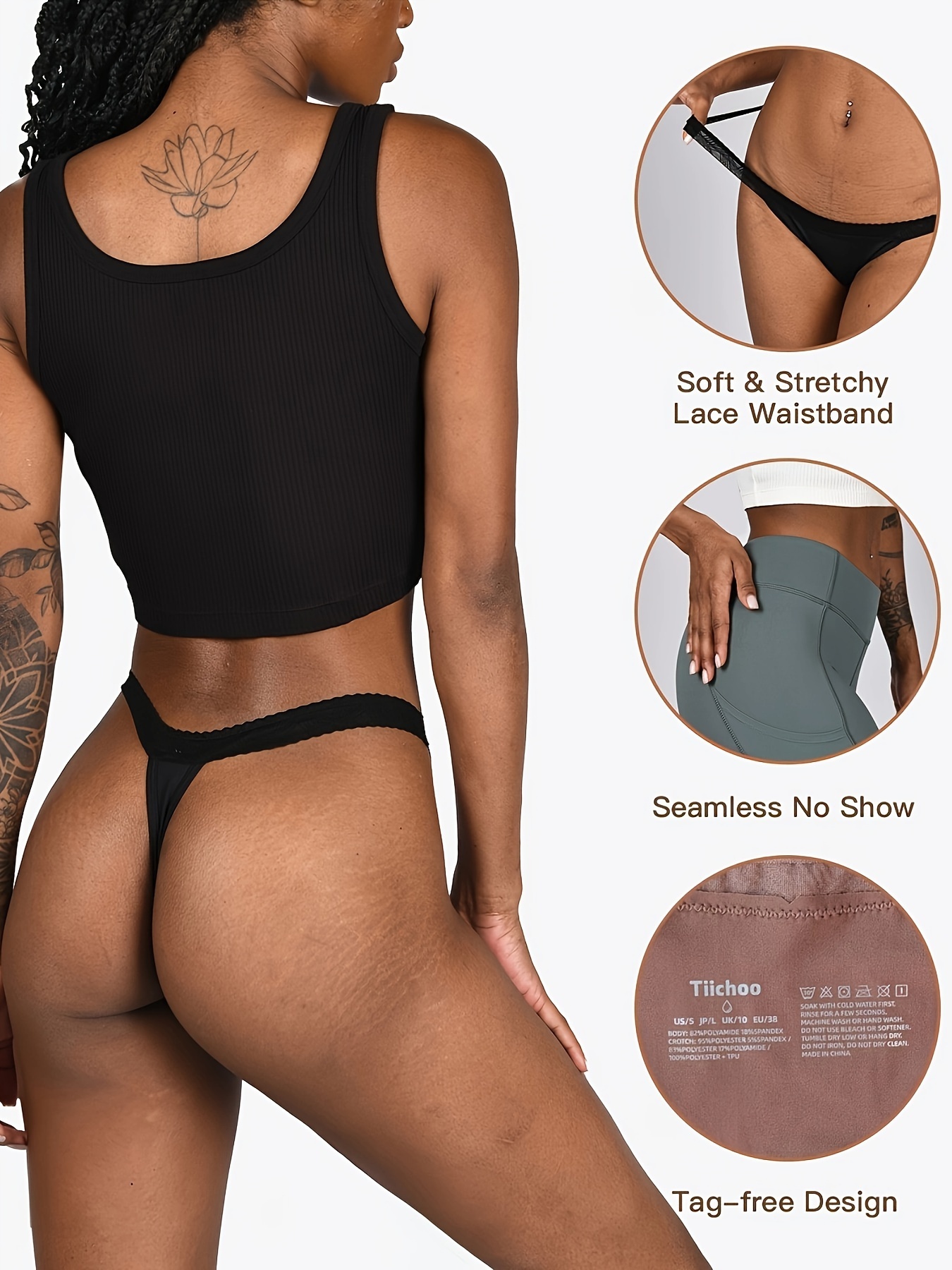 FHP 6 Pack Period Thong Underwear Lace Period Panties Light Absorbency Seamless Leakproof Underwear for Women