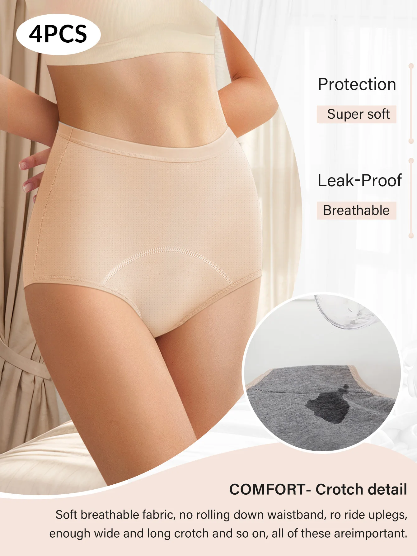 FHP Period Underwear Flow Menstrual Period Panties Leak-Proof Panty for Female Teens Girls 4 Pack