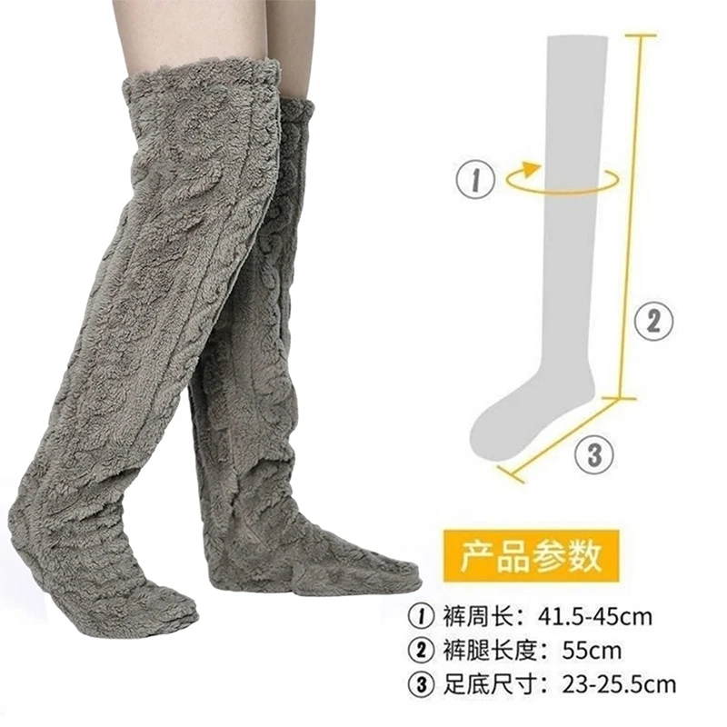 Thickened Velvet Twist Leg Warm Knee Socks High Boots Floor Shoes For Ladies Indoor Slippers